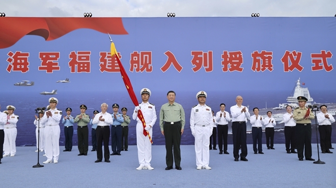 我國第一艘電磁彈射型航空母艦入列 習(xí)近平出席入列授旗儀式并登...
